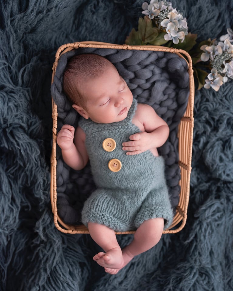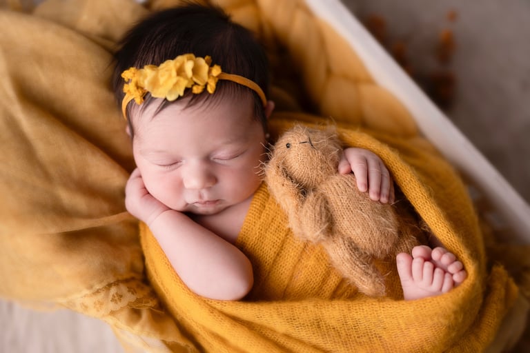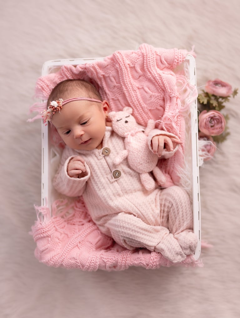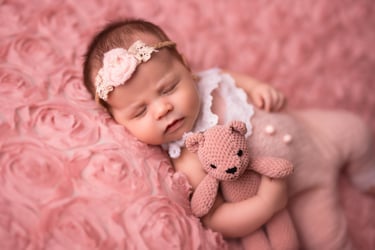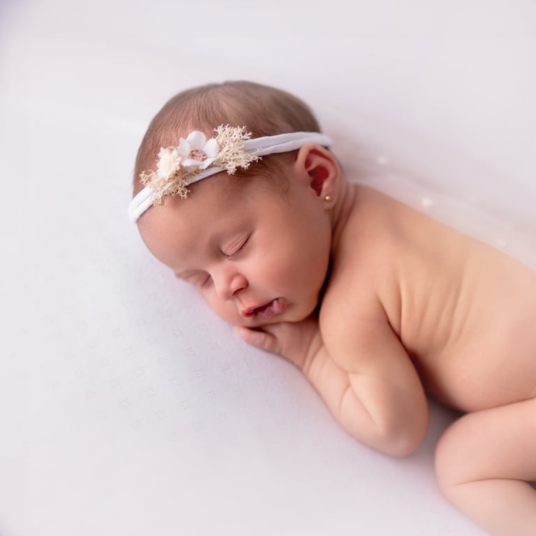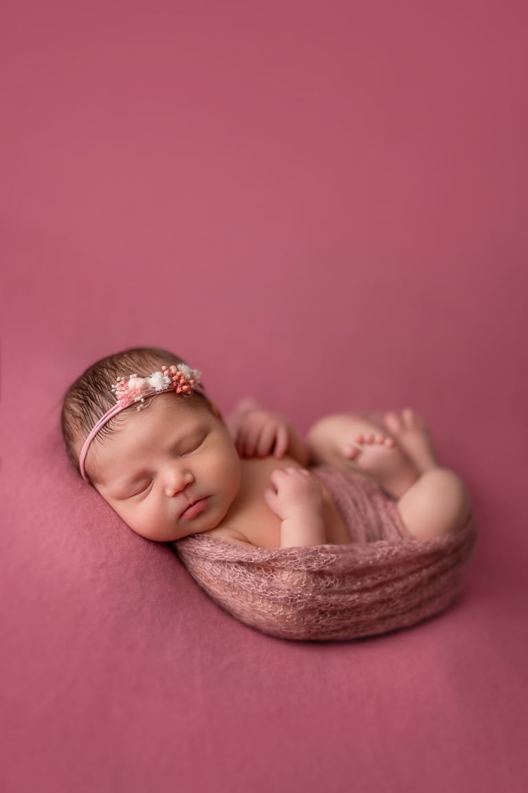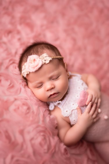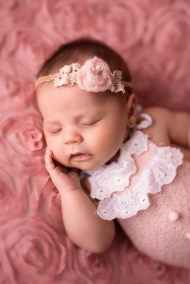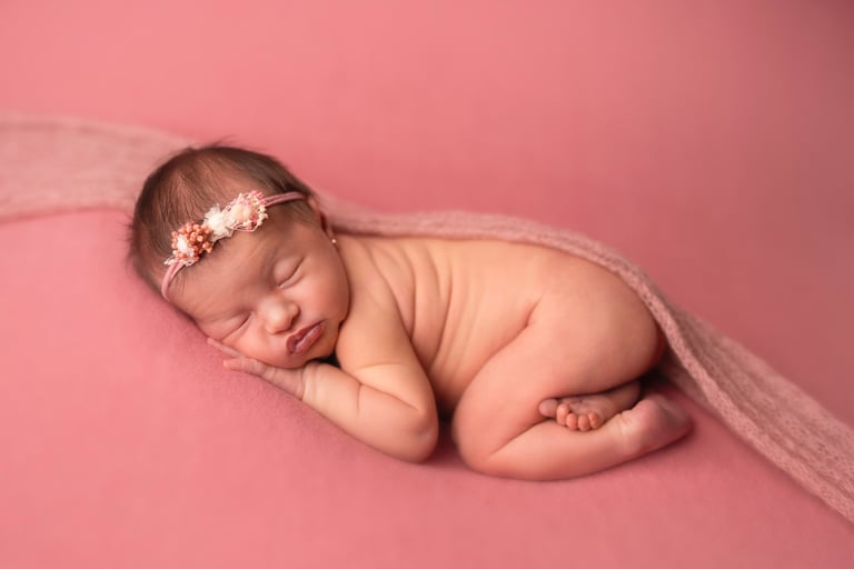 Las fotografías de newborn en posado y solitario tienen numerosos escenarios, poses y colores.