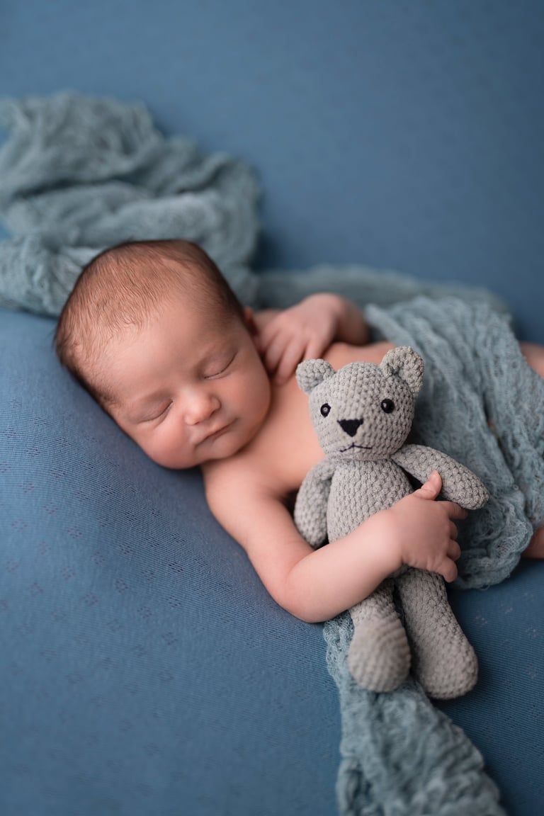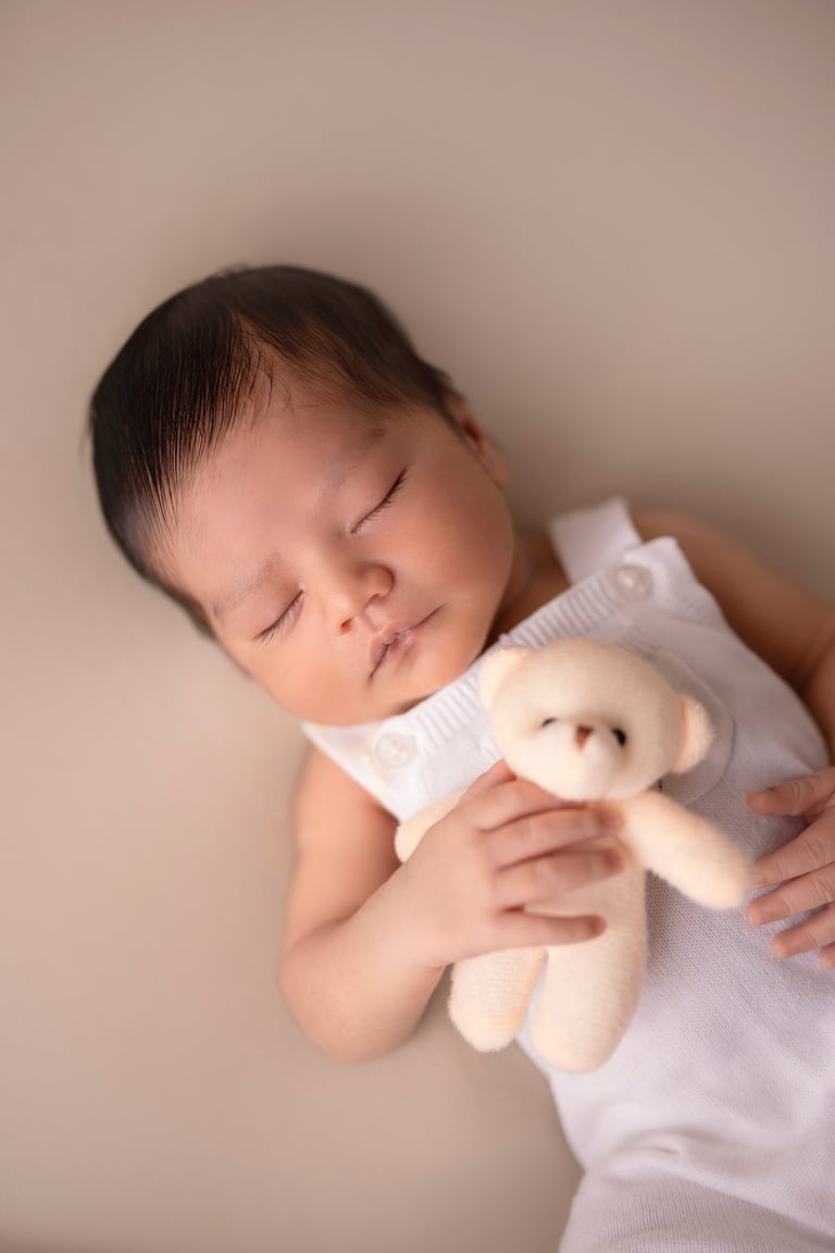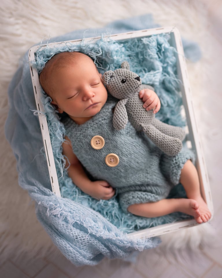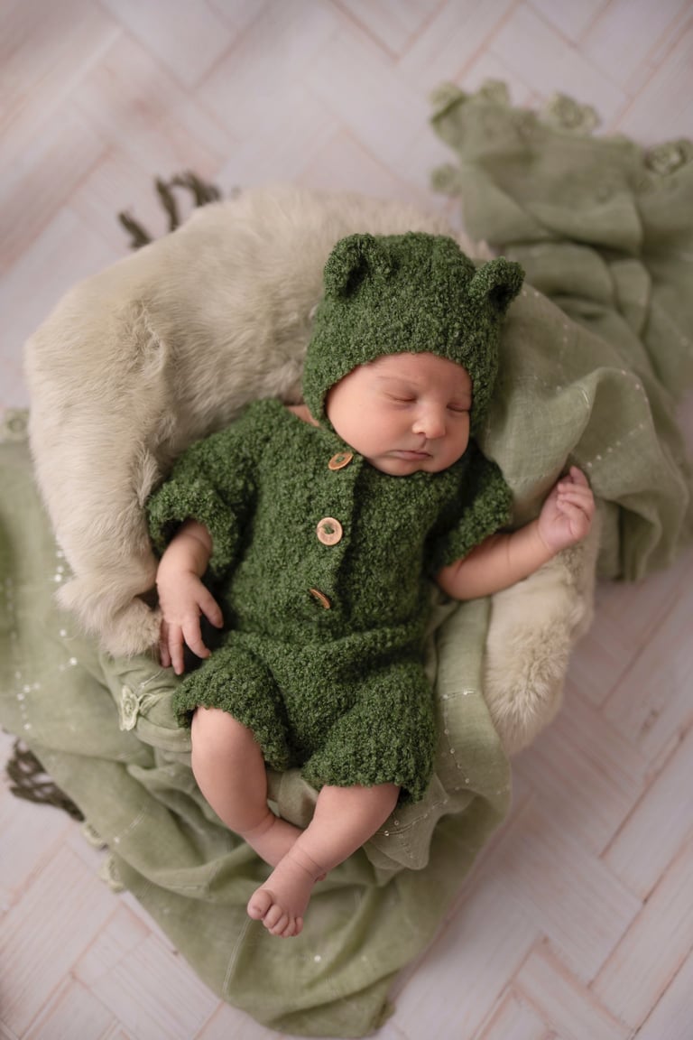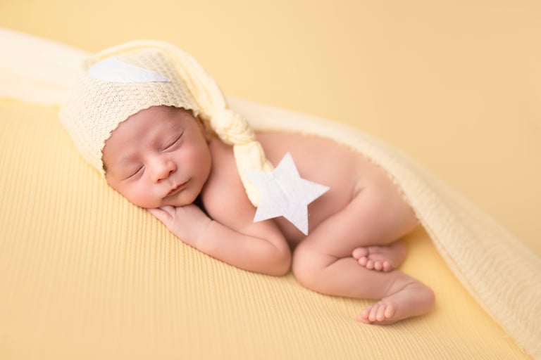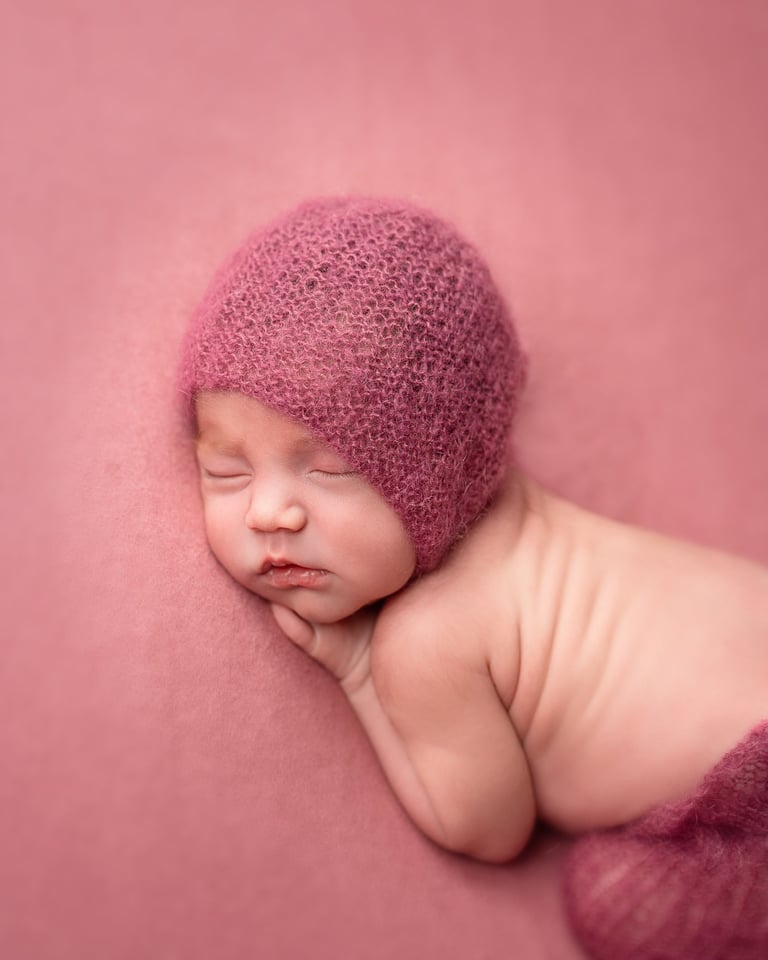 Las fotografías de newborn en posado y solitario tienen numerosos escenarios, poses y colores.