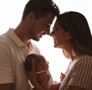 Las sesiones de newborn no solo incluyen fotos del bebé, si no también familiares, tanto en pareja como con papi y mami por separado, y con hermanitos si los tuviese.