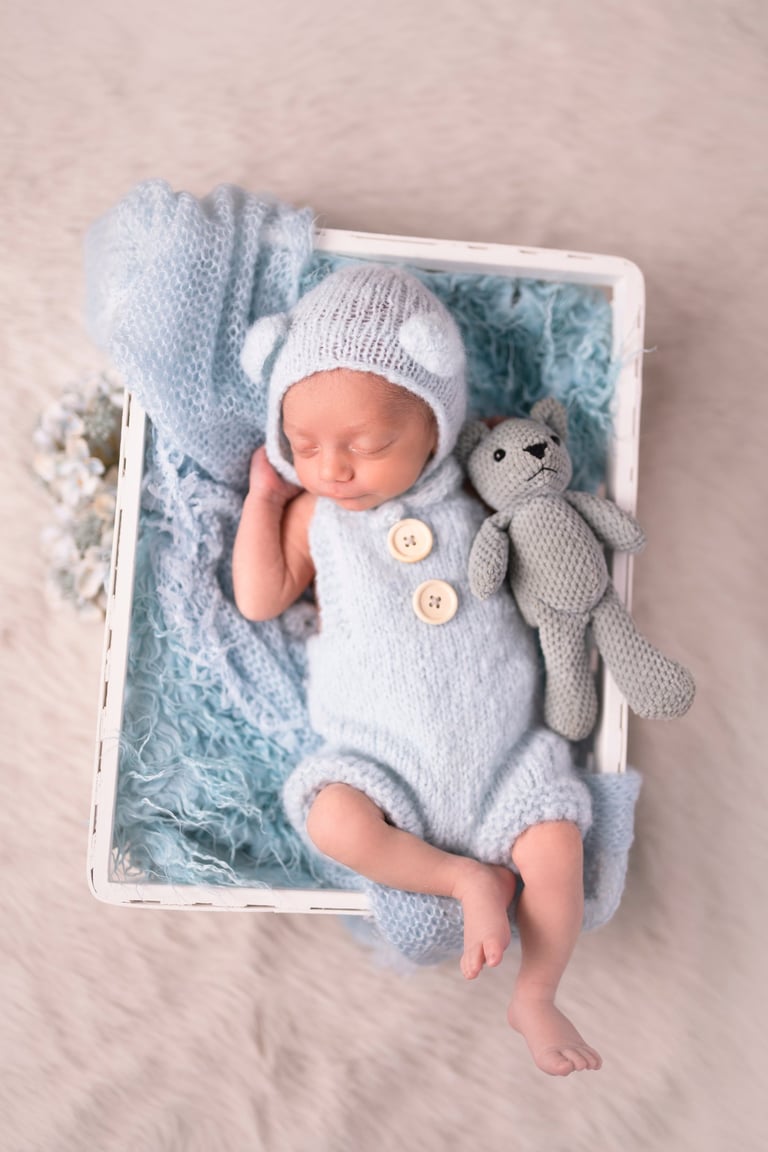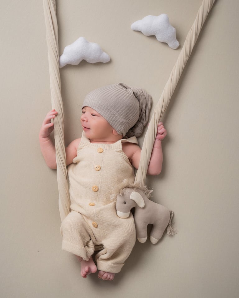 Siempre disponemos de ropita en el estudio, pero en ocasiones las tallas pueden tener dificultad para coincidir, por eso siempre se pide que se traiga algún conjuntito por si acaso. También recomendamos reservar con tiempo para que podamos hacerla antes de los 10/12 días de edad.