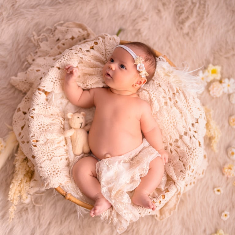 Siempre disponemos de ropita en el estudio, lo único necesario (pero no imprescindible) Es traer un body básico más casero para las fotos familiares.